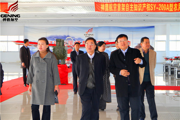 高海濤巡視員及工作組參觀了通遼市神鷹飛機制造在限公司。通遼市神鷹通用航空有限公司董事長邱志剛向檢查組詳細介紹了“SY-200”農(nóng)用飛機和植保無人機研發(fā)制造情況,匯報了公司當(dāng)前和今后的發(fā)展目標(biāo)和方向。期間,高海濤巡視員還親切地詢問了公司在發(fā)展建設(shè)中遇到的困難。
